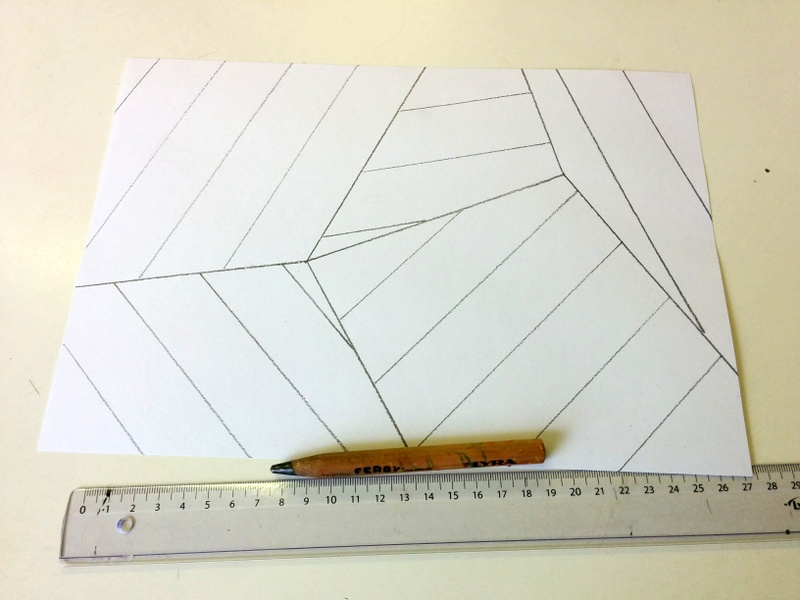 Je me suis basé sur Wall Drawing 565 de Sol LeWitt. Il y a d’autres œuvres autour des obliques chez LeWitt (en couleur notamment) mais celle-ci a l’avantage de présenter des obliques dans à peu près toutes les directions et pas seulement sur une orientation à 45°.