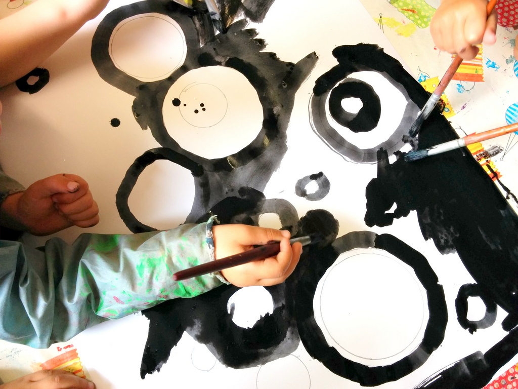 Suivant la largeur du tableau, prévoir un groupe de quatre à cinq enfants qui vont travailler en même temps.