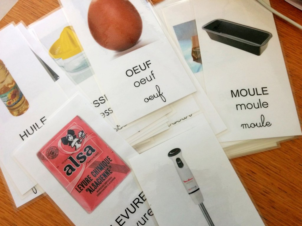 Lorsque je travaille avec mes élèves de maternelle (ms et gs) sur certaines activités mettant en oeuvre du vocabulaire spécifique, j’aime utiliser des flashcards, cartes-images en français dans le texte, pour associer l’objet que l’on va manipuler, le mot et l’image… et inversement. Voici ce que j’ai fait sur le vocabulaire de la cuisine.